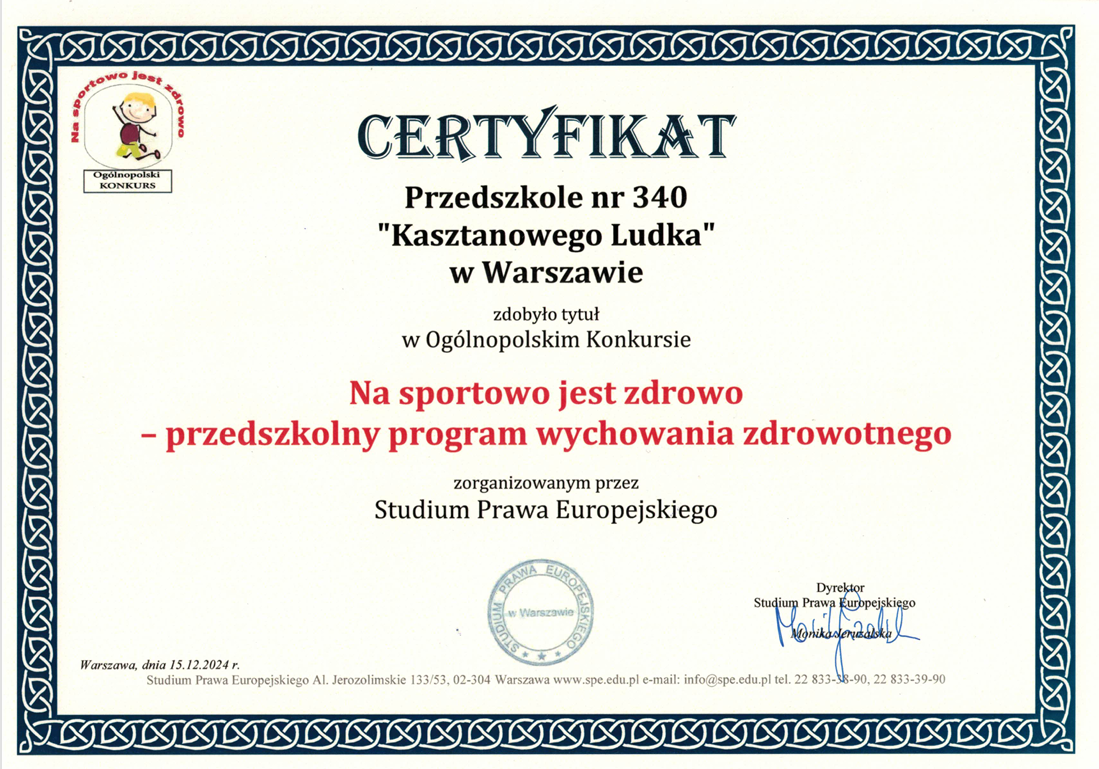 Od września do grudnia 2024 r. nasza placówka brała udział w konkursie promującym zdrowy styl życia pod hasłem "Na sportowo jest zdrowo". Realizowaliśmy zadania, które miały na celu edukację dzieci w zakresie